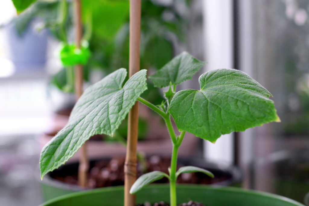 When growing cucumbers in containers, it’s a good idea to limit their width more than their height. Since pots give the roots less room to spread, letting vines sprawl everywhere can quickly lead to overcrowding and poor airflow. Instead, prune off side shoots and train one or two main vines up a small trellis or cage. If your cucumber plant outgrows the support, you can pinch the tip of the main stem to keep it manageable, but don’t worry too much about height. Just keep the plant tidy and balanced so the limited root system can keep up with all that leafy growth and fruit production.
