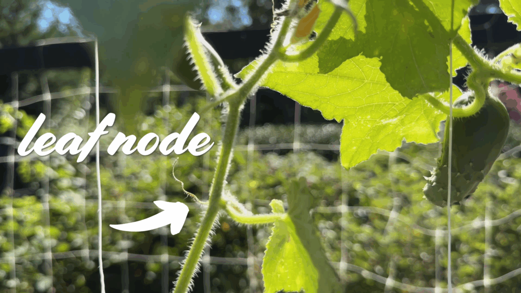 This style of pruning improves airflow, reduces the chance of disease, and helps the plant stay focused on making cucumbers instead of extra leaves.