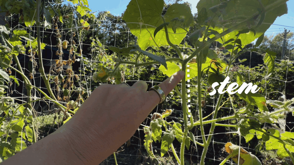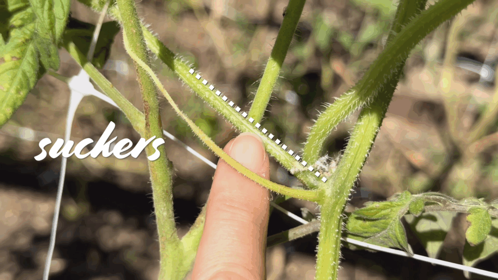 - Find the suckers at the leaf nodes and remove them, just like you would when pruning tomatoes. These little shoots steal energy that could be going into fruit.